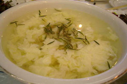 珍貴的“龍井茶”,如果泡過一兩趟水以后就倒掉,實(shí)在有點(diǎn)可惜了。如果用泡過的茶葉做一道“綠茶拌豆腐”的菜肴,在這個(gè)初春時(shí)節(jié),吃起來倒別有一番橄欖菜的味道,且營(yíng)養(yǎng)豐富,非常清涼、好吃。