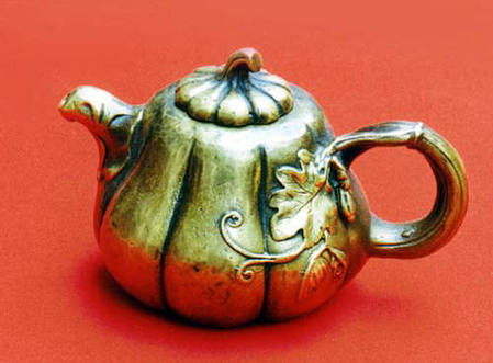 銅茶壺金屬用具是指由金、銀、銅、鐵、錫等金屬材料制作而成的器具。它是我國(guó)最古老的日用器具之一,早在公元前18世紀(jì)至公元前221年秦始皇統(tǒng)一中國(guó)之前的1500年間,青銅器就得到了廣泛的應(yīng)用,先人用青銅制作盤盛水,制作爵、尊盛酒,這些青銅器皿自然也可用來(lái)盛茶。自秦漢至六朝,茶葉作為飲料已漸成風(fēng)尚,茶具也逐漸從與其他飲具共用中分離出來(lái)。大約到南北朝時(shí),我國(guó)出現(xiàn)了包括飲茶器皿在內(nèi)的金銀器具。到隋唐時(shí),金銀器具的制作達(dá)到高峰。本世紀(jì)80年代中期,陜西扶風(fēng)法門寺出土的一套由唐僖宗供奉的鎏金茶具,可謂是金屬茶具中罕見(jiàn)的稀世珍寶。但從宋代開(kāi)始,古人對(duì)金屬茶具褒貶不一。貯茶錫罐元代以后,特別是從明代開(kāi)始,隨著茶類的創(chuàng)新,飲茶方法的改變,以及陶瓷茶具的興起,才使包括銀質(zhì)器具在內(nèi)的金屬茶具逐漸消失,尤其是用錫、鐵、鉛等金屬制作的茶具,用它們來(lái)煮水泡茶,被認(rèn)為會(huì)使;茶味走樣以致很少有人使用。但用金屬制成貯茶器具,如錫瓶、錫罐等,卻屢見(jiàn)不鮮。這是因?yàn)榻饘儋A茶器具的密閉性要比紙、竹、木、瓷、陶等好,具有較好的防潮、避光性能,這樣更有利于散茶的保藏。因此,用錫制作的貯茶器具,至今仍流行于世。