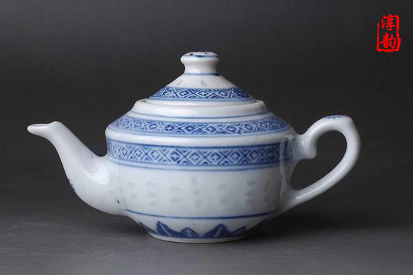 青花瓷茶具,其實是指以氧化鈷為呈色劑,在瓷胎上直接描繪圖案紋飾,再涂上一層透明釉,爾后在窯內經(jīng)1300℃左右高溫還原燒制而成的器具。它的特點是:花紋藍白相映成趣,有賞心悅目之感;色彩淡雅幽菁可人,有華而不艷之力。加之彩料之上涂釉,顯得滋潤明亮,更平添了青花茶具的魅力。