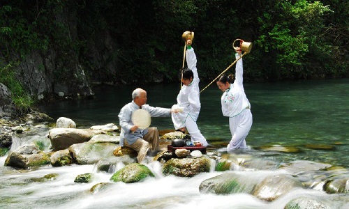 還有一些高雅的茶藝表演,是蒙頂山“禪茶”中所獨創(chuàng)的十八道獻茶技藝。相傳“龍行十八式”茶技是北宋高僧禪惠大師在蒙頂山結廬清修時所創(chuàng)。過去作為僧人修行的一門功課,“龍行十八式”茶藝只在蒙頂山僧人中流傳,直到清代才逐漸傳入民間。創(chuàng)下融茶道、武術、舞蹈、禪學、易理為一體的茶技-蒙頂派“龍行十八式”。佛教文化和茶文化的水乳交融,更奠定了蒙山作為世界茶文化圣山的至尊地位。