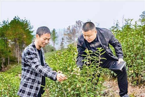 圖為近日,鄉(xiāng)土人才陳偉勝正在指導(dǎo)茶農(nóng)加強(qiáng)冬季茶園管理。