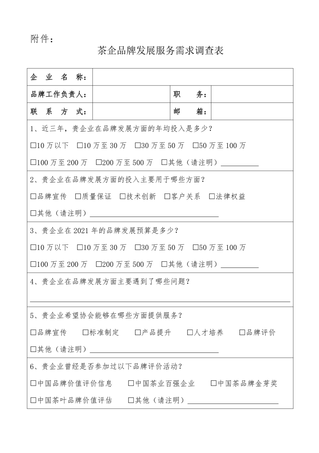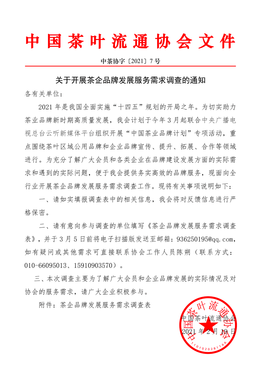關(guān)于開(kāi)展茶企品牌發(fā)展服務(wù)需求調(diào)查的通知