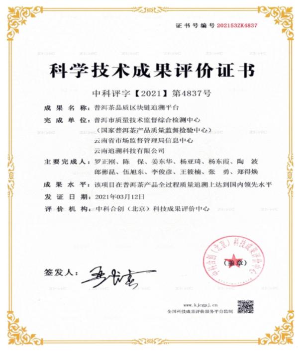 日前,第三方專業(yè)科技成果評價機構(gòu)依據(jù)科技部《科學(xué)技術(shù)評價辦法》,組織同行專家對國家普洱茶產(chǎn)品質(zhì)量監(jiān)督檢驗中心完成的“普洱茶品質(zhì)區(qū)塊鏈追溯平臺”項目科技成果開展評價。