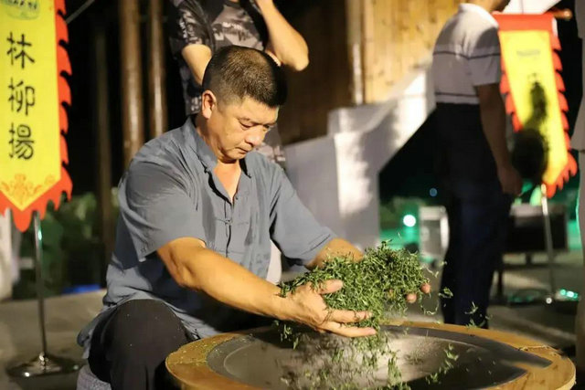 比賽現(xiàn)場,手工制茶師們紛紛亮出絕活。只見制茶師將茶葉快速入鍋,嫻熟的雙手在溫度200攝氏度左右的炒鍋中翻轉騰挪。經過一遍遍翻炒、一遍遍揉捻、一遍遍抖散茶團,周寧高山云霧茶濃郁的清香撲鼻而來。