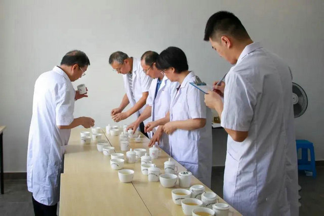 評外形、鑒湯色、聞香氣、品滋味、看葉底……斗茶賽現(xiàn)場,8位審評專家揉捏嗅聞,細看細品,專注評審參賽茶樣,根據(jù)茶樣的外形、香氣、湯色、滋味和葉底五個方面進行評分,將五個分數(shù)相加,從高到低設置獎項,并對獲獎茶樣進行質量安全檢測,評選出各個茶類的茶王一名,金獎兩名,銀獎三名。