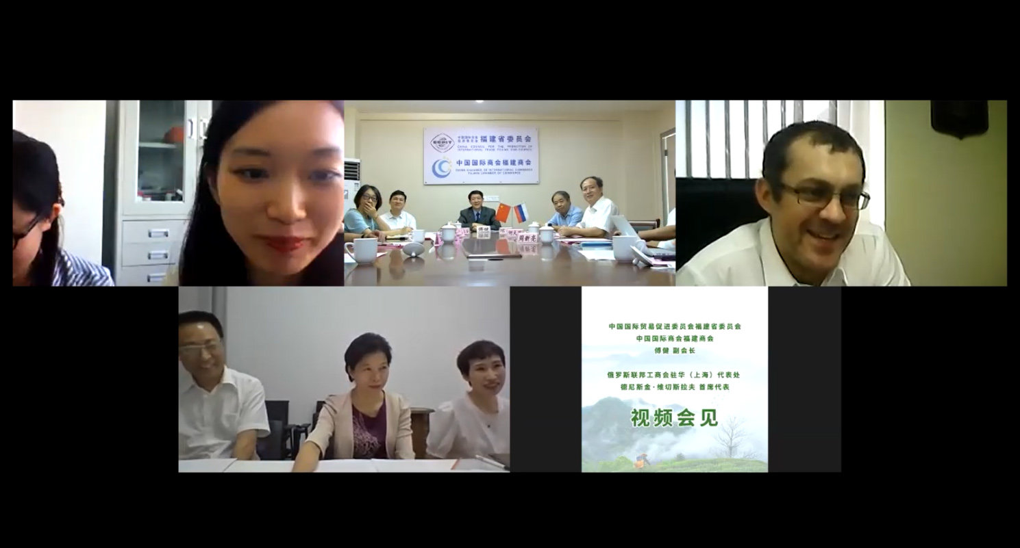福建省貿(mào)促會(huì)與俄羅斯聯(lián)邦工商會(huì)駐滬代表處視頻會(huì)見(jiàn)現(xiàn)場(chǎng)