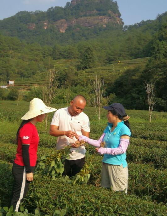 為探索茶園高效、生態(tài)、環(huán)保建設(shè)模式,福建農(nóng)林大學(xué)根系生物學(xué)研究中心主任廖紅與團(tuán)隊走進(jìn)星村鎮(zhèn),把高效豆科作物提高茶樹的養(yǎng)分利用效率,并達(dá)到減肥增效等科研成果,運(yùn)用到茶葉基地建設(shè),以提高茶葉的產(chǎn)量及質(zhì)量。廖紅教授認(rèn)為,茶豆套種作用明顯,大豆可產(chǎn)生根瘤菌,具有固氮作用,增加土壤肥力,茶園里套種大豆可少下或不下氮肥。同時,金龜子、蚜蟲等更喜歡大豆葉子,從而減少茶樹蟲害。還能增加茶葉產(chǎn)量,實驗表明,靠近大豆的茶樹每平方米可長出190個芽梢數(shù),比沒有靠近大豆的茶樹多出一倍。
