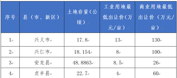 目前,黔西南州各縣(市、新區(qū))土地存量約192.2036公頃。全州地表水、地下水資源量比較豐富,城鎮(zhèn)和工業(yè)園區(qū)供水設(shè)施較為完善。非居民用水價(jià)格3.2-4.68元/立方米;特種用水價(jià)格:4.5-8.4元/立方米。